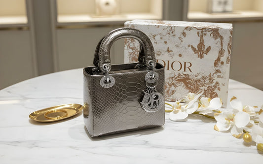 Dior Metallic Gold Microcannage Patent Leather Mini Lady Dior Tote